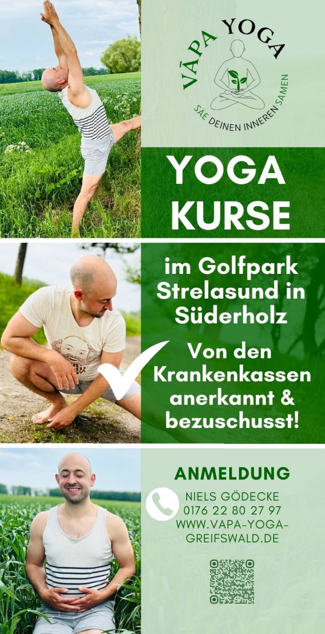 Ab dem 15. Januar 2026 beginnt im Golfpark Strelasund ein neues Yoga-Quartal – perfekt für alle, die Körper und Geist etwas Gutes tun möchten. Alle Kurse sind zertifiziert und werden von den gesetzlichen Krankenkassen mit bis zu 80 % bezuschusst.